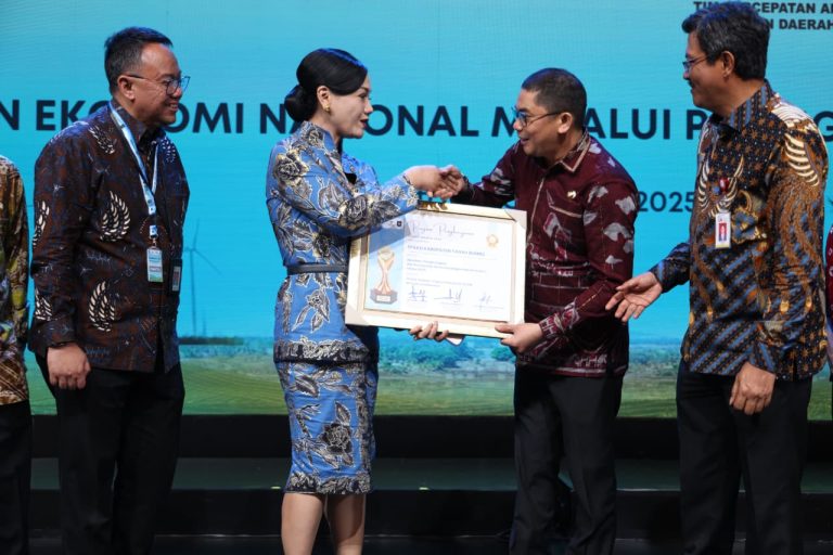Pada kesempatan itu, Bupati Andi Rudi Latif menerima langsung penghargaan TPKAD di Jakarta, Jumat (10/10/2025).
