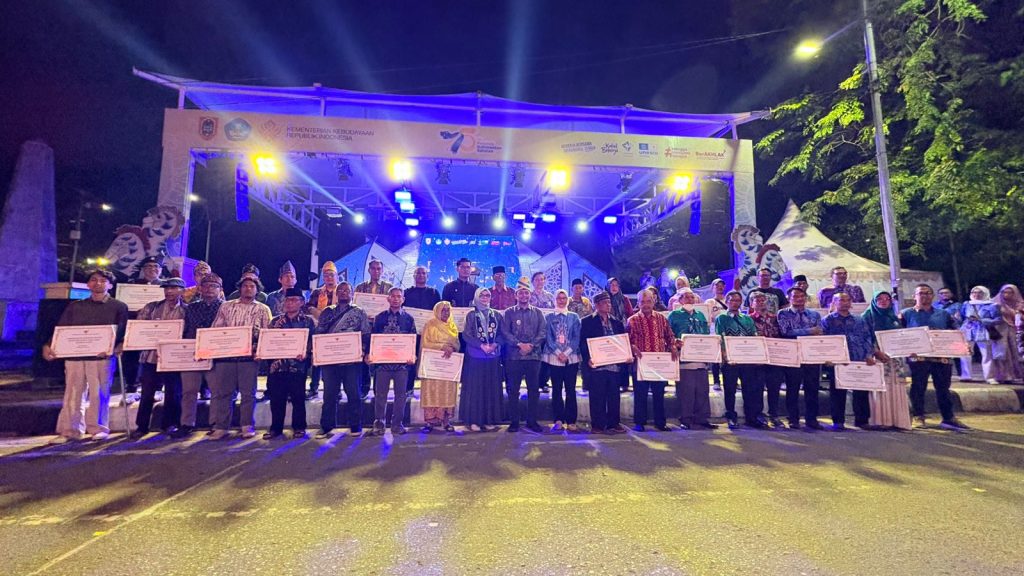 BATULICIN, DINAMIKABERITA.COM – Tiga pelestari budaya asal Kabupaten Tanah Bumbu (Tanbu) menerima penghargaan pada Malam Anugerah Kebudayaan Kalimantan Selatan 2025, yang diselenggarakan oleh Dinas Kebudayaan dan Pendidikan Provinsi Kalimantan Selatan, Rabu (27/8), di Area Tugu Nol Kilometer, Banjarmasin.