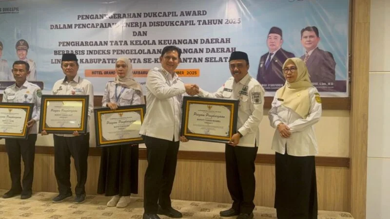 Penghargaan tersebut diberikan oleh Gubernur Kalimantan Selatan, H. Muhidin, dan diserahkan secara simbolis oleh Plt Kepala Disdukcapil Kalsel, Thaufik Hidayat, kepada Kepala Disdukcapil Tanah Bumbu, Gento Hariyadi.