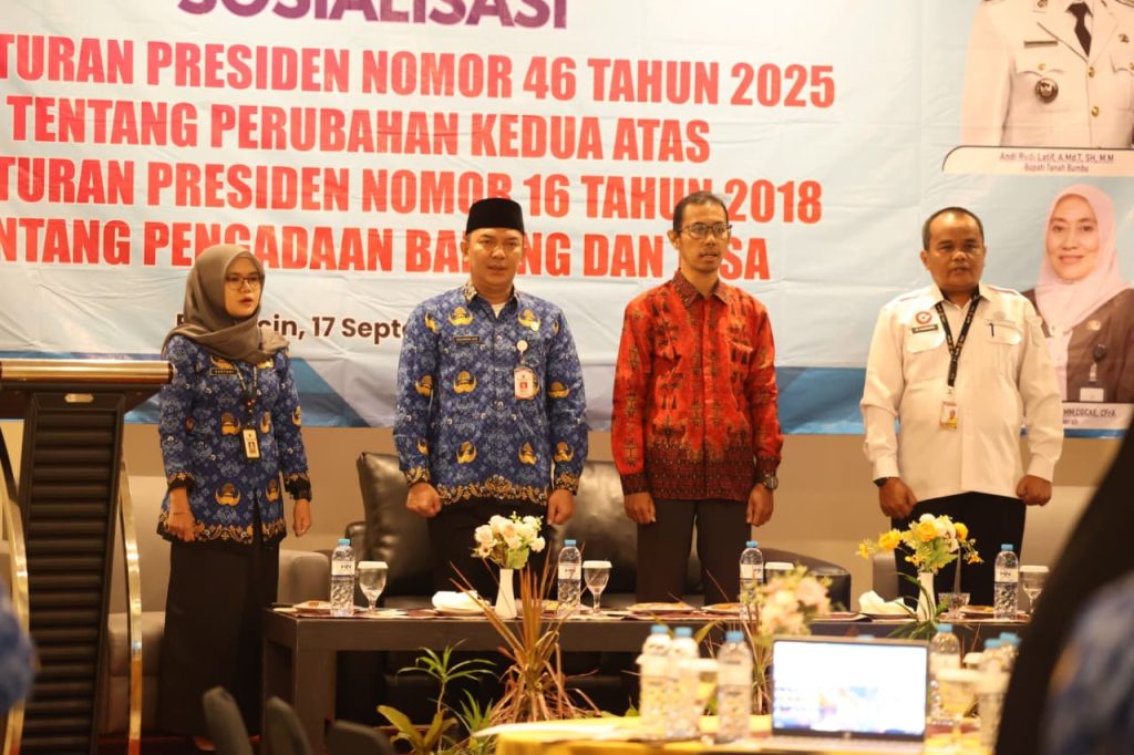 Bupati Andi Rudi Latif dalam sambutannya disampaikan Plt Asisten Pemerintahan dan Kesra, M. Putu Wisnu Wardhana mengatakan Perpres 46 Tahun 2025 ini merupakan perubahan kedua atas Perpres 16 Tahun 2018 dan menetapkan ketentuan baru yang wajib diimplementasikan oleh pemerintah pusat maupun pemerintah daerah.
