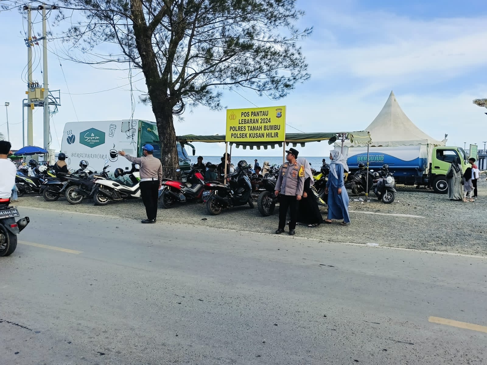 Serupa, di wisata Pantai Angsana juga dipadati pengunjung wisata. Pihak kepolisian dipimpin Kapolsek Angsana Iptu Muhammad Ilham Haqqani bersama jajarannya melakukan pengamanan.