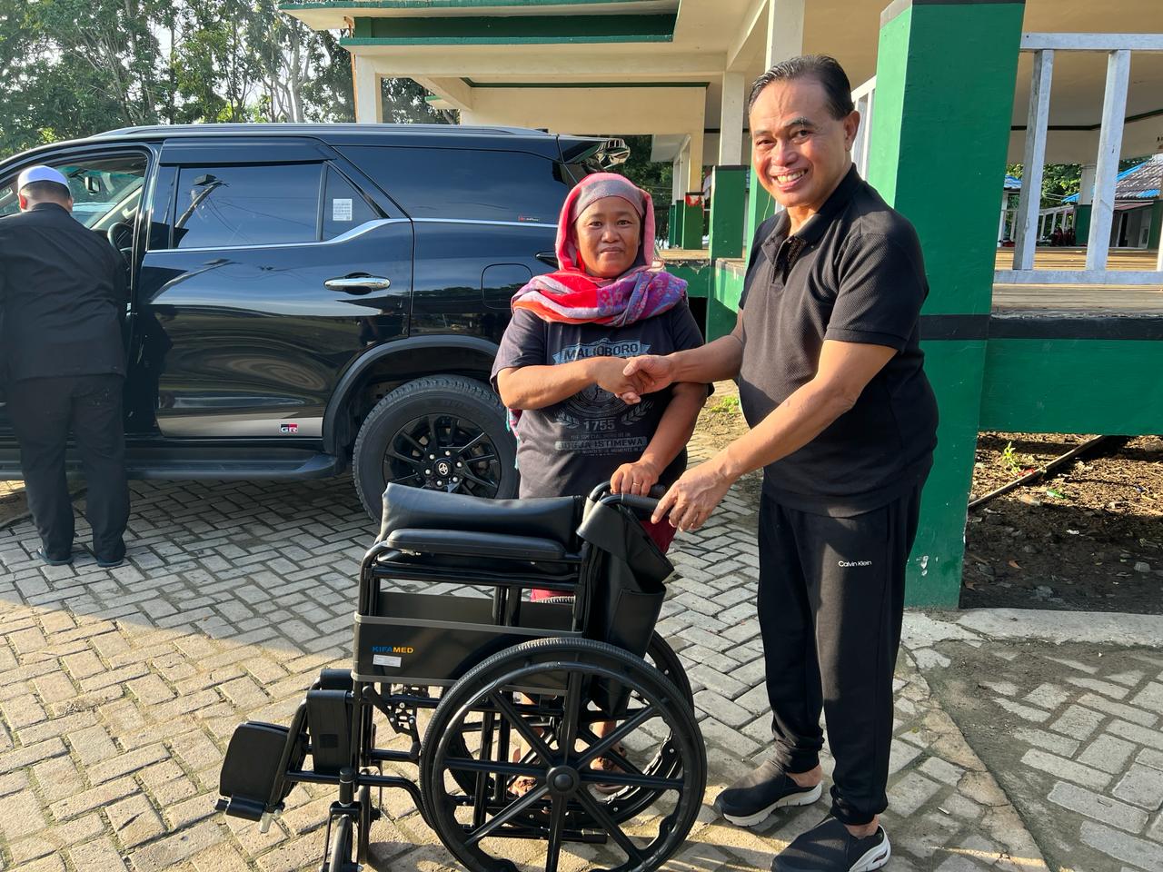 Penyerahan kursi roda tersebut merupakan bentuk kepedulian Abah Zairullah kepada warganya yang disabilitas.
